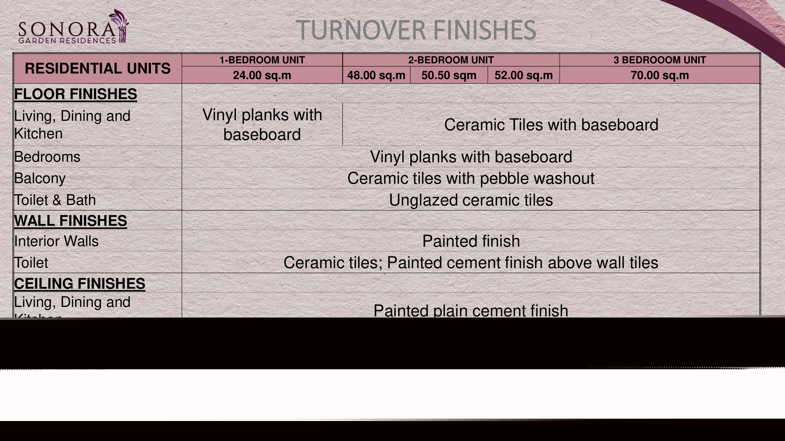 TURNOVER FINISHES
