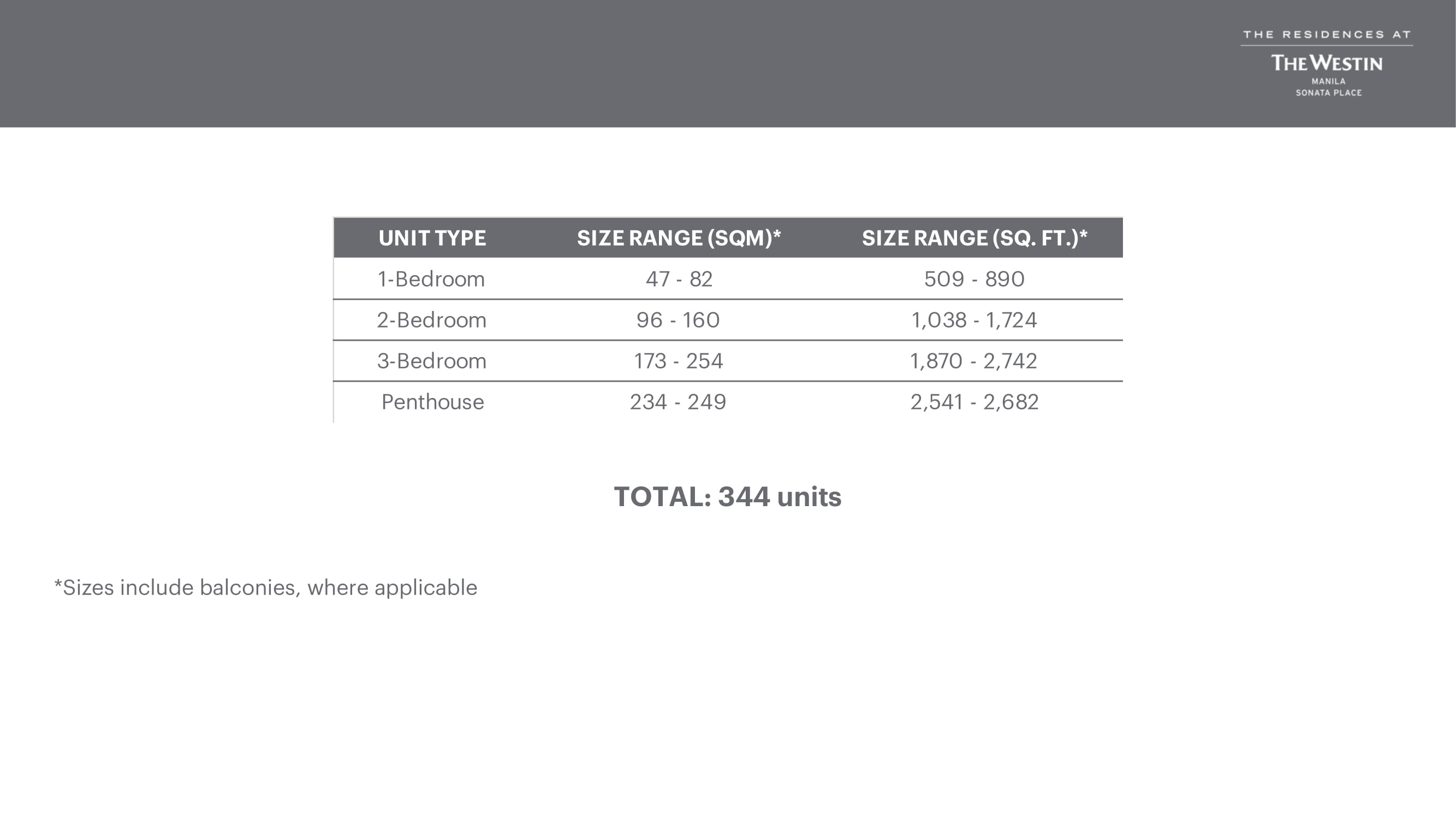 *Size includes balconies, where applicable