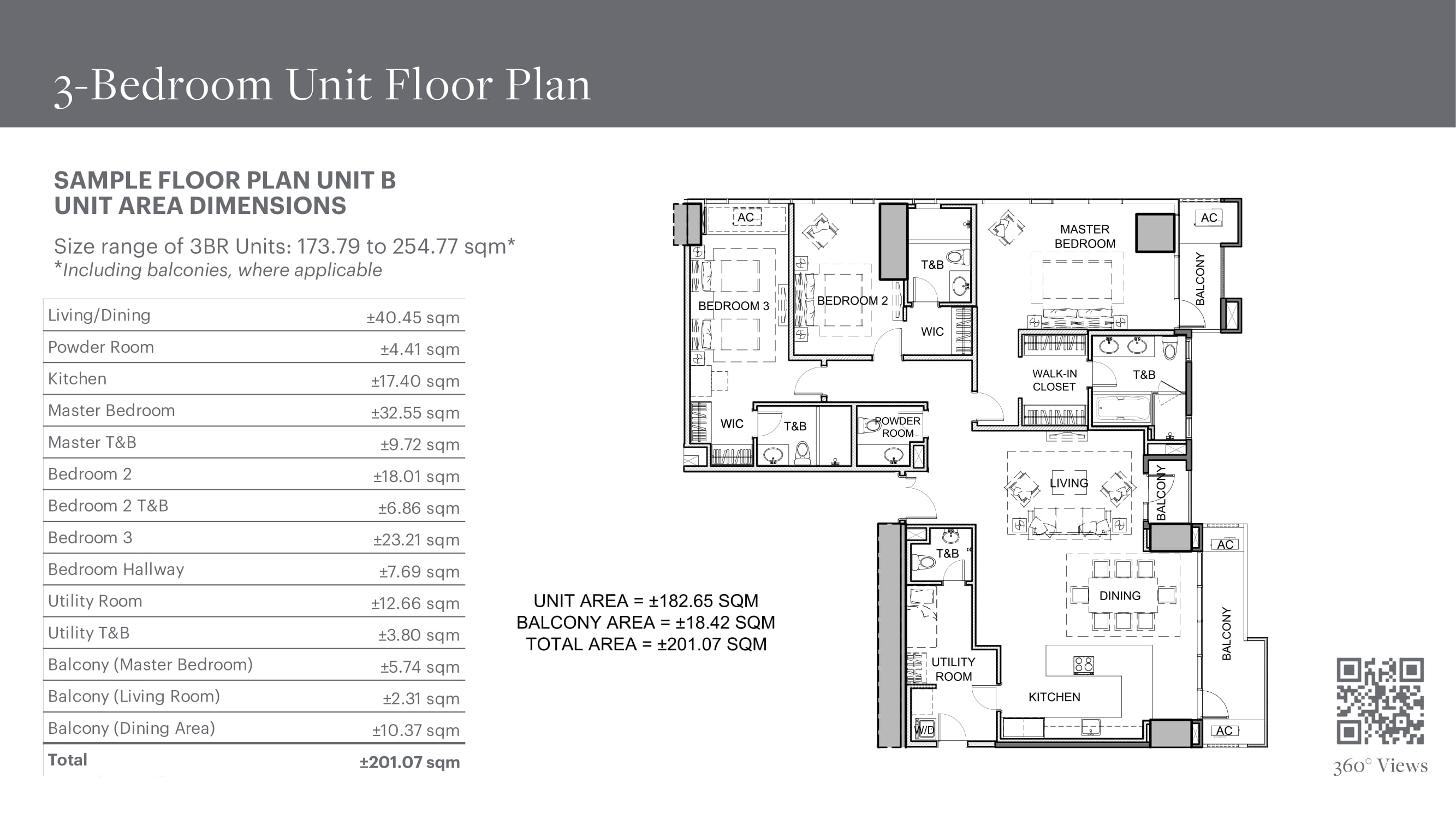 Three Bedroom - Size Range: 173.79 to 254.77 square meters*