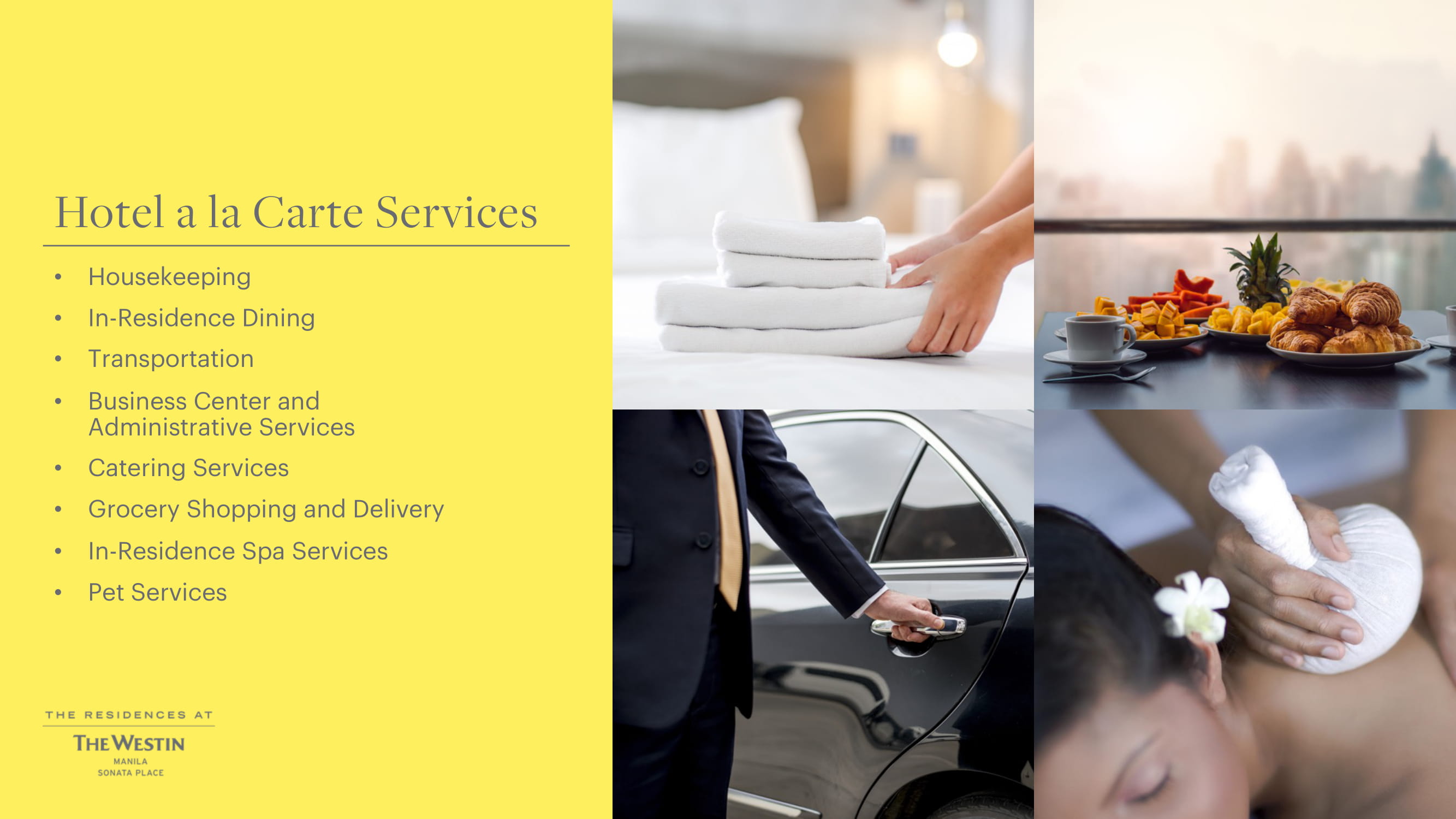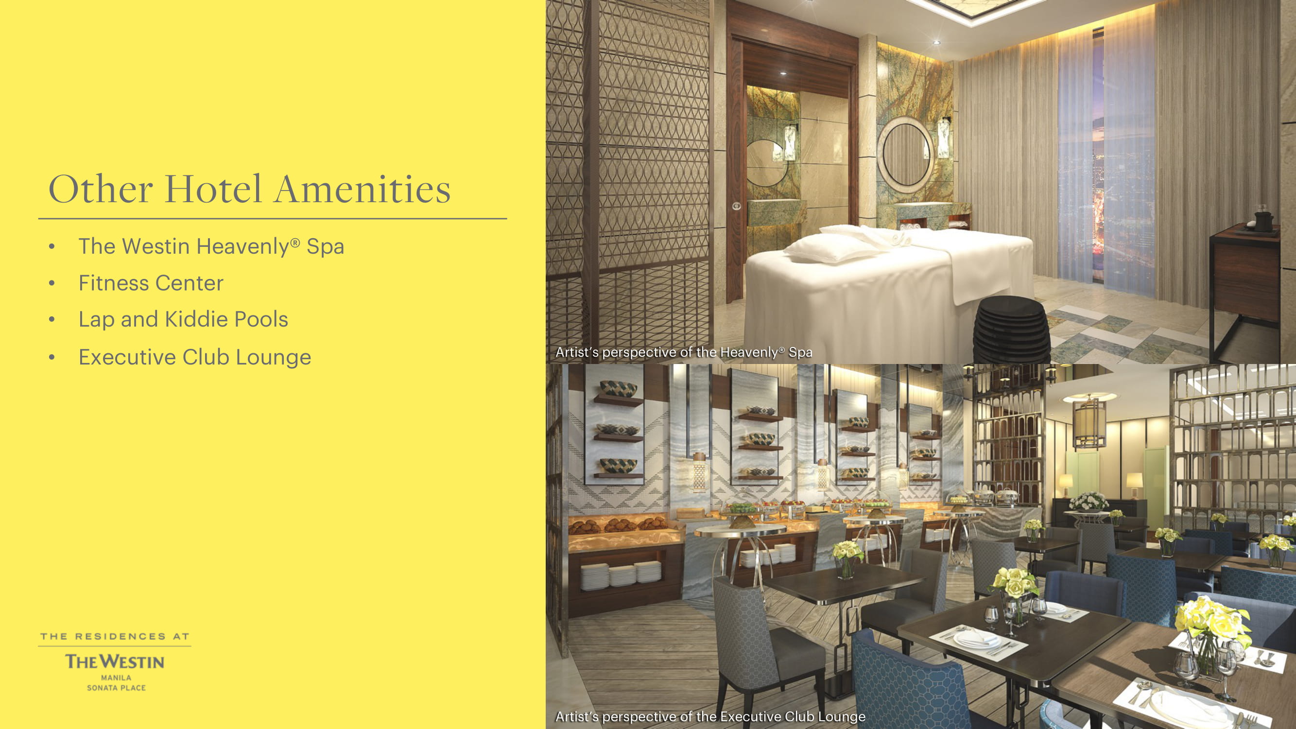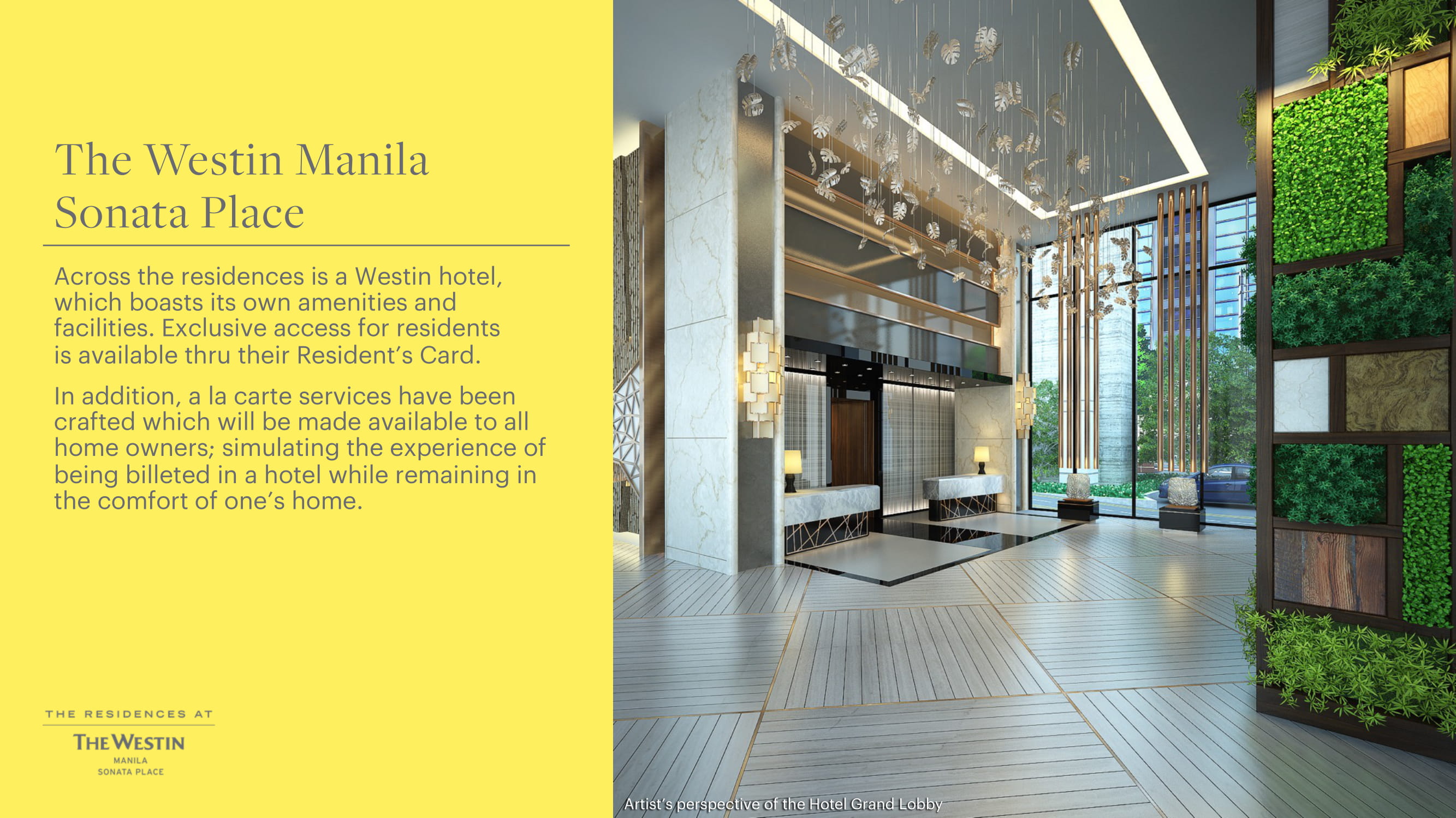 - Exclusive access to The Westin Manila Sonata Place at the Second Floor