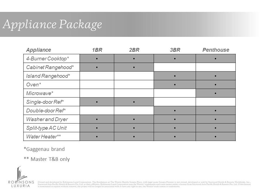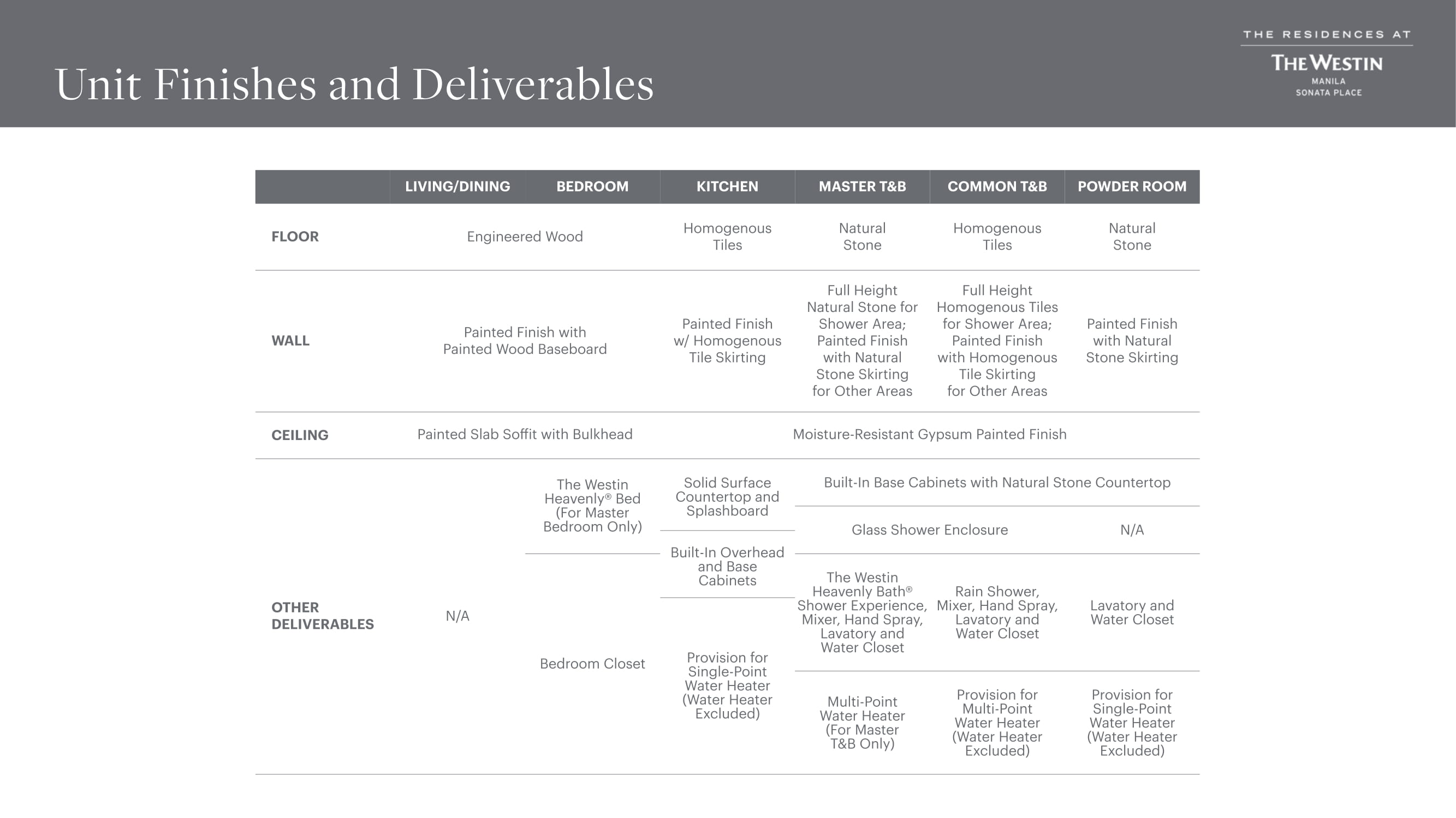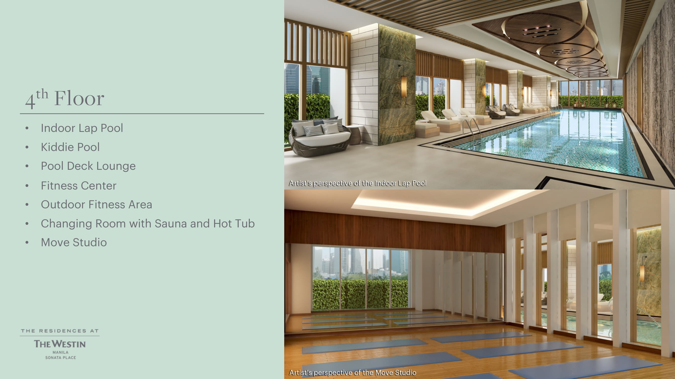 - Exclusive access to The Westin Manila Sonata Place at the Second Floor